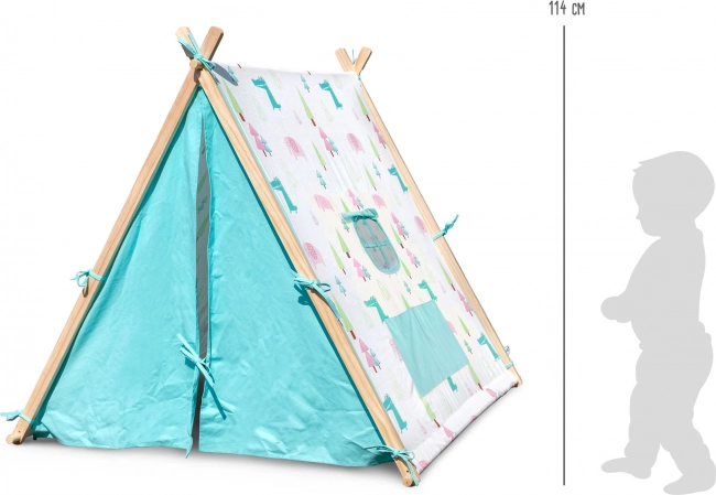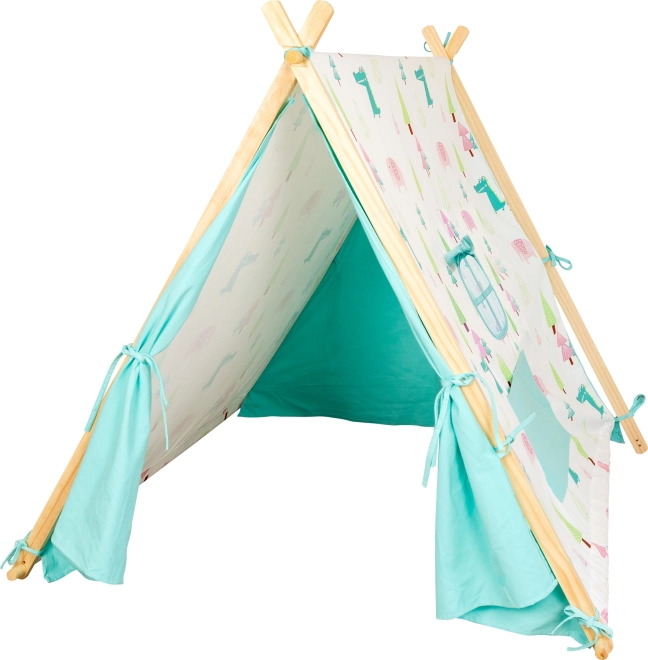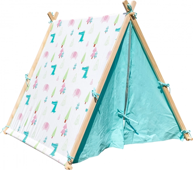 Legetelt til børn med dyremotiv og træ-tekstilstel