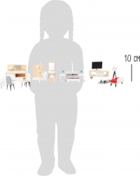 Det stilfulde og tidløse SMALL FOOT møbelsæt forvandler ethvert dukkehus til et hyggeligt hjem. Kombinationen af naturtræ og hvid virker ren og moderne, og detaljer som puder, lamper og spejl giver legen realisme. Delene er tilpasset små børnehænder og kendetegnet ved styrke og holdbarhed.