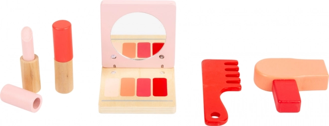 Træ sættet inkluderer forskellige værktøjer til skønhedspleje, der inspirerer børn til kreativ leg og udvikler deres færdigheder.
