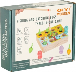 En sjov træ-montessori-lege, hvor børn kan “fiske” og have havearbejde derhjemme. Med en magnetisk fiskestang fanger de fisk og orme, og de trækker gulerødderne op i de filtede blade. Udvikler finmotorik, hånd–øje-koordination, tålmodighed og præcision, lærer farver og taktil sansning. Fremstillet af kvalitetstræ med sikker, giftfri maling.