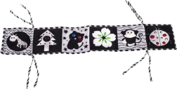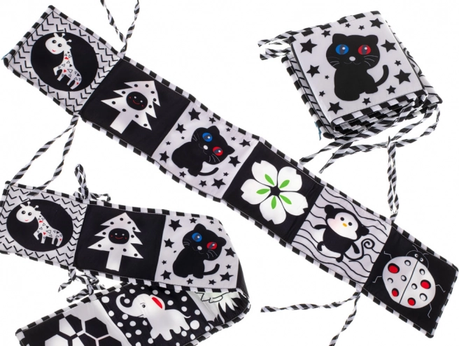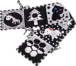 Kontrast sensorimotorisk bog, designet som sengeskærm, er det perfekte valg for børn, der begynder at opdage verden. Bogen i harmonikastil kan let fastgøres til sengen med snore, hvilket giver både sjov og sikkerhed.