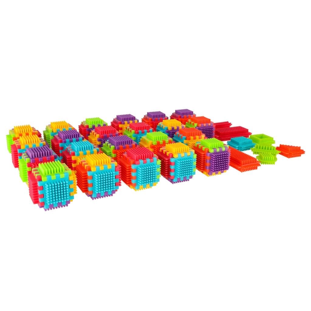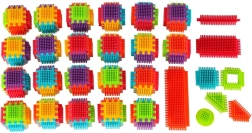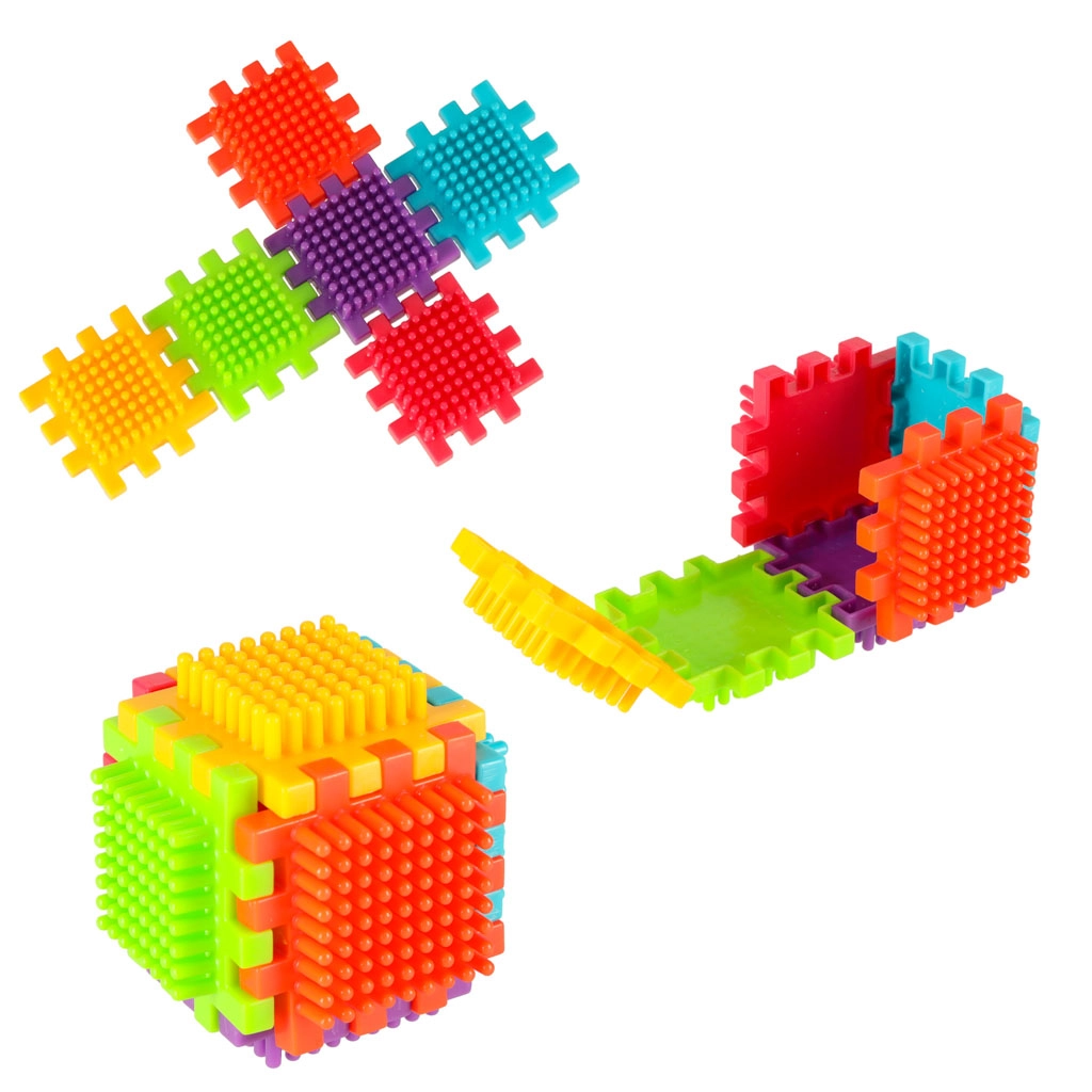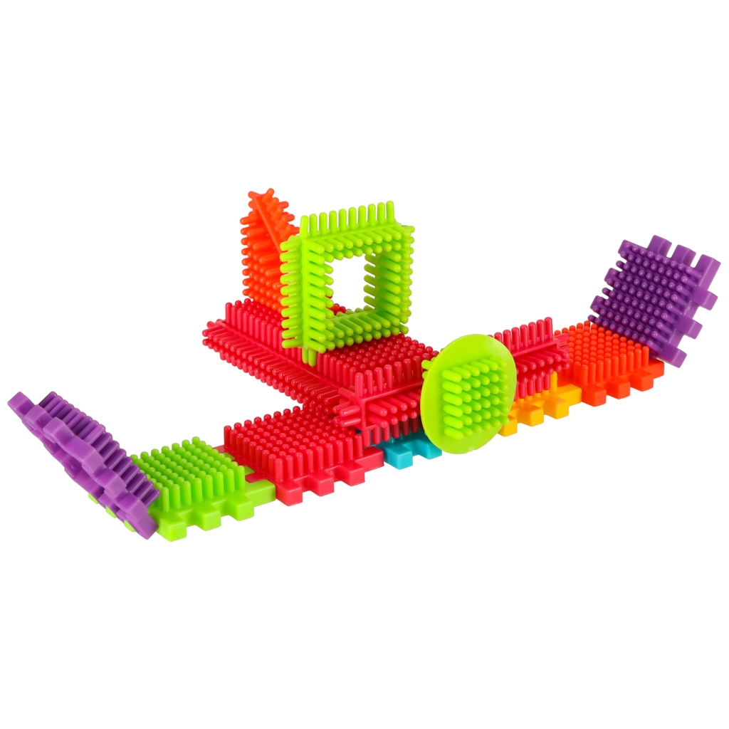 Blokkene er lavet af plast af høj kvalitet, de er meget lette, fleksible og samtidig super holdbare. De hjælper med at lære nye former og farver og udvikler finmotorikken. Blokkene er designet til at stimulere barnets udviklende sanser: syn gennem markante farver og berøring gennem den originale form og forbindelsesmåde. Blokke, der giver dig fantastiske muligheder for kreativ leg! Ud over den traditionelle mulighed for at kombinere som med almindelige klodser kan disse blokke også forbindes med hele fladens side, hvilket giver endnu en skabemulighed. De kan bruges til at bygge bygninger, robotter og andre konstruktioner!