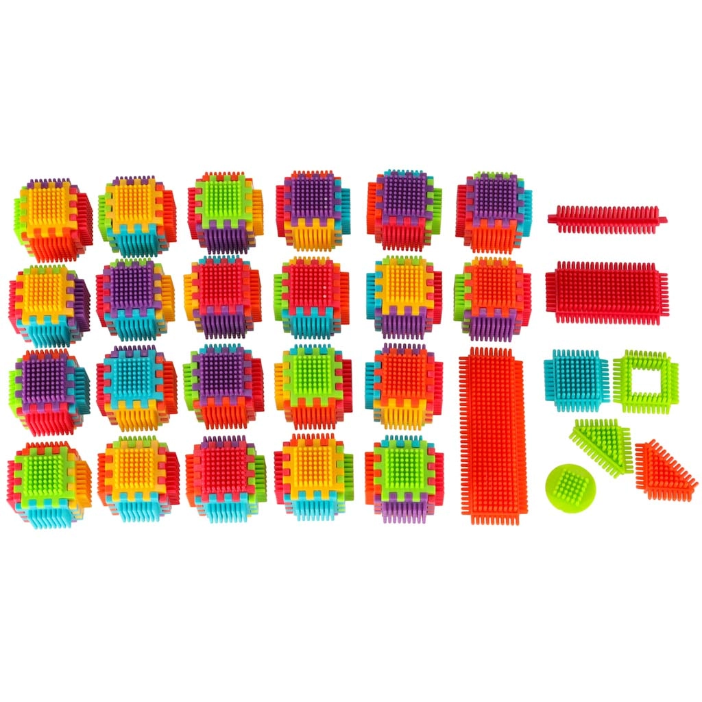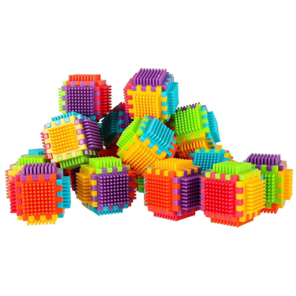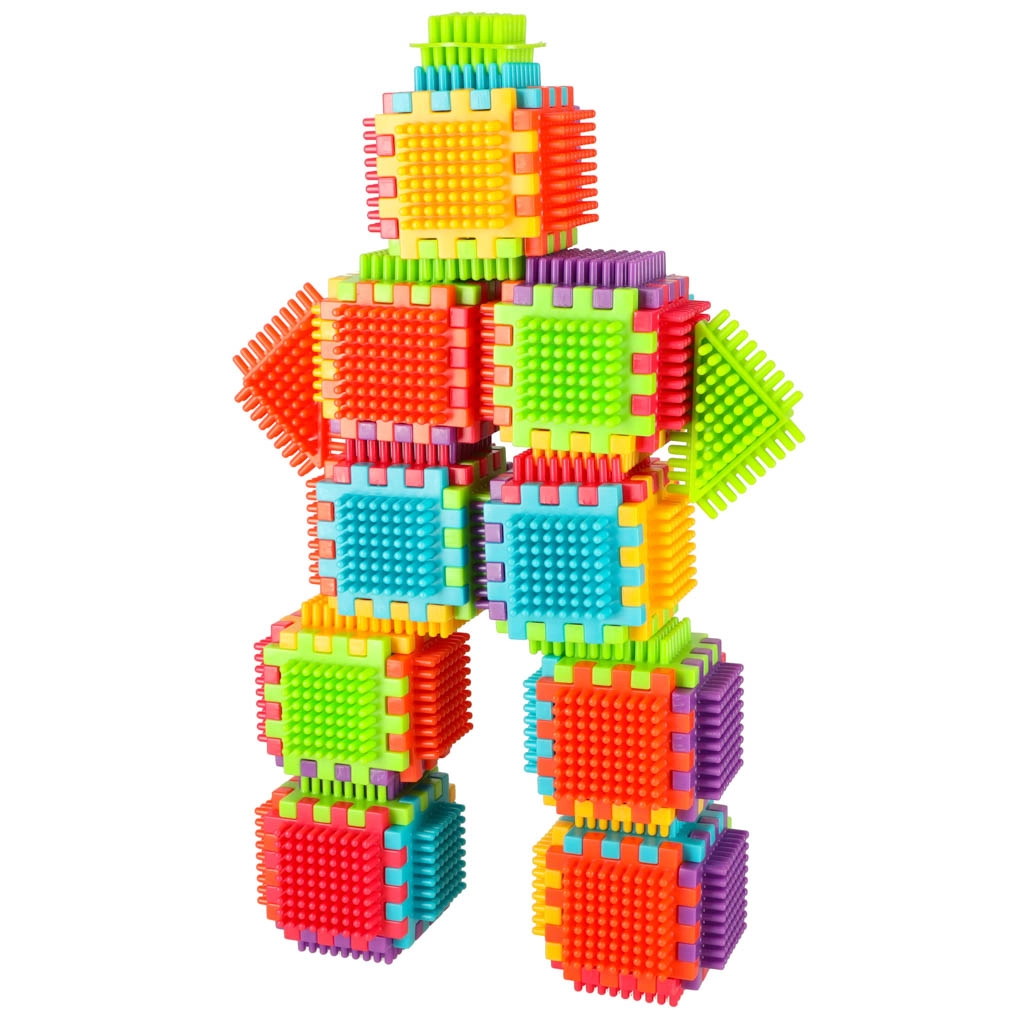 Blokkene er lavet af plast af høj kvalitet, de er meget lette, fleksible og samtidig super holdbare. De hjælper med at lære nye former og farver og udvikler finmotorikken. Blokkene er designet til at stimulere barnets udviklende sanser: syn gennem markante farver og berøring gennem den originale form og forbindelsesmåde. Blokke, der giver dig fantastiske muligheder for kreativ leg! Ud over den traditionelle mulighed for at kombinere som med almindelige klodser kan disse blokke også forbindes med hele fladens side, hvilket giver endnu en skabemulighed. De kan bruges til at bygge bygninger, robotter og andre konstruktioner!