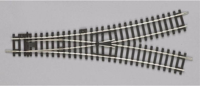 Sporskifte med detaljeret gengivelse af træsveller i naturtro farver. Kombinerer to symmetriske 15° kurver R9. Kan betjenes manuelt. Der tilbydes også en fjernbetjent drevemekanisme, som der er forberedt tilslutning til. Hovedegenskaber: symmetrisk 15° radius (R9) 908 mm gengivelse af træsveller Dokumentation: Brochure til PIKO H0 A-Gleis (DE, EN)