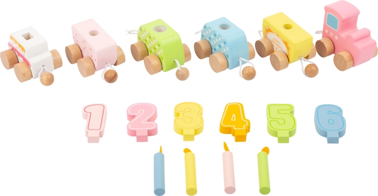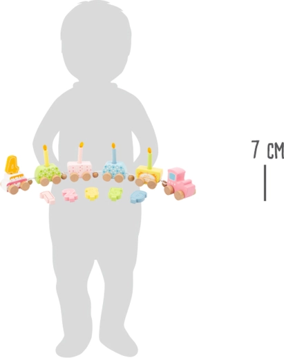 Det træfødselsdagstog fra Small Foot kombinerer leg og dekoration. Dets pastelmalede vogne tilføjer farve og charme til enhver fest. Med mulighed for fri samling og adskillelse af de enkelte dele bliver toget en alsidig legetøjsfavorit, der vokser med barnet og kan bruges i årevis. Sættet indeholder: