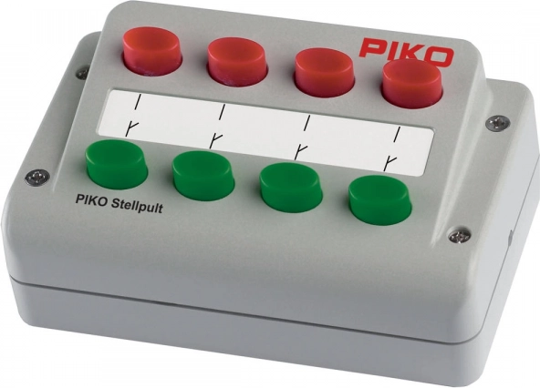 Det analoge betjeningspanel fra Piko muliggør enkel og effektiv styring af lys og sporskifter på dit modeljernbaneanlæg. Det er udstyret med fire dobbelttryk-knapkontakter, som gør det let og overskueligt at styre forskellige udgange, fra lys til sporskifter.
