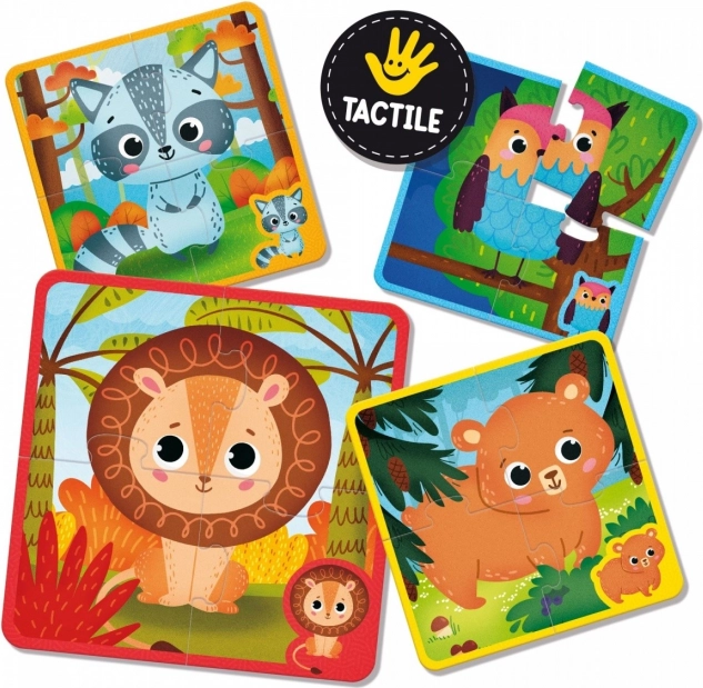 Sættet Montessori Følelsespuslespil indeholder 24 brikker, som kan sammensættes til 6 forskellige dyremotiver. Hvert dyr har en speciel ru overflade, der hjælper børnene med at udvikle følesansen og observationsevnen. Disse puslespil er designet til at involvere alle barnets sanser og understøtte deres naturlige udvikling.