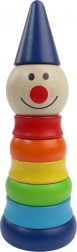 Denne glade træpyramide-klovn fra det tjekkiske mærke Detoa er et ideelt første puslespil til børn fra 1 år. Syv farvede ringe og et hoved med hue sættes på en solid pind og skaber et legende klovne-look, der motiverer børn til gentagen stabling.
