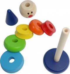 Takket være ringe i forskellige størrelser træner børn finmotorik, logisk tænkning og tålmodighed. De klare farver understøtter visuel perception og læring af farver og rækkefølge. Trækonstruktionen sikrer holdbarhed og sikker leg.