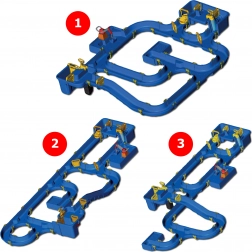 Indeholder dæmninger, vandhjul, havn og pumper til varierede vandlege.