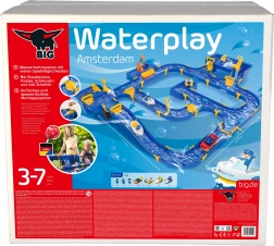 Amsterdam Waterplay er ideel til børn, der elsker at lege med vand. Vandstrømme kan skabes ved hjulenes bevægelse, og vandet styres ved at fylde kanalerne.