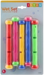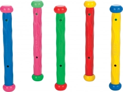 Gør dykkertræning til en leg. De farvede stænger med indvendig vægt synker til bunden efter at være kastet i vandet, og børn finder dem let takket være de tydelige farver. Konkurrencepoint på hver stang motiverer til flere forsøg og udvikler koordination og orientering under vand.