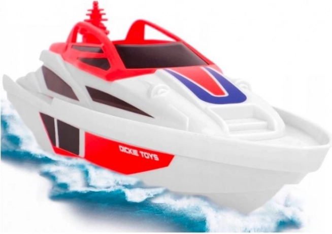 RC Sea Cruiser fra DICKIE TOYS er et fremragende valg til de første sejlture og for små fans af vandmodeller. Elegant design, frisk fart og sikker drift gør denne motorbåd til det perfekte legetøj til pool, dam eller sø. Takket være automatisk motorstart først ved kontakt med vand er brugen sikker og intuitiv.