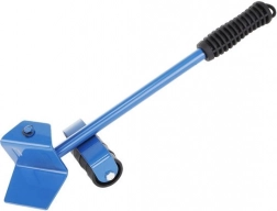Metalstang med komfortabelt greb i gummi og støttehjul reducerer anstrengelsen markant ved løft af tunge møbler.