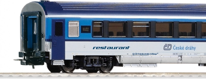 Denne model af spisevognen ARbmpz 1./2. klasse i RAILJET ČD-udførelse gengiver troværdigt det nuværende udseende og detaljerne fra de virkelige togsæt. Takket være høj kvalitet og korrekte proportioner passer den perfekt ind i moderne tjekkiske togformationer.