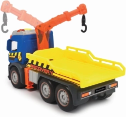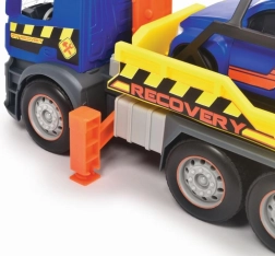 Børn kan løfte, laste og sikre køretøjer med den bevægelige kran og den nedfældelige rampe med teksten RECOVERY.