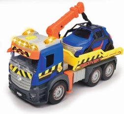 Denne by-bugseringsbil fra MERCEDES giver børn en autentisk oplevelse af at bugserer køretøjer. Takket være friktionsdrevet kører bilen frem, når den skubbes, de gennemsigtige vinduer viser et detaljeret interiør, og lys- samt lydeffekter forstærker den realistiske leg.