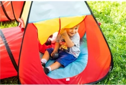 Oplev vores smukke børne telt, som vil give de små opdagelsesrejsende uforglemmelige eventyr og kreativ leg. Teltet omfatter tipi, tunnel og hus, hvilket giver mange muligheder for leg og udvikling af jeres børns færdigheder. Det kan nemt foldes ud på få sekunder takket være de indbyggede fleksible tråde.