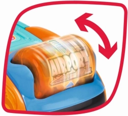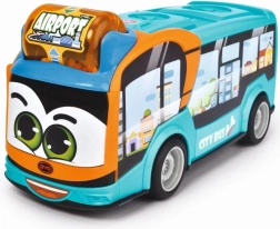 Denne farverige børnebus støtter fantasi, finmotorik og sanseoplevelse. Takket være friløb er kørslen jævn og let at styre selv for små børn, mens det drejelige rasleelement med destinationsstation giver legen en ekstra sjov dimension.