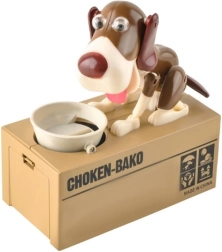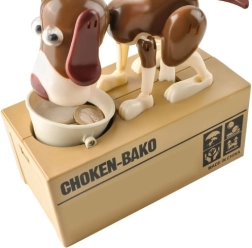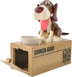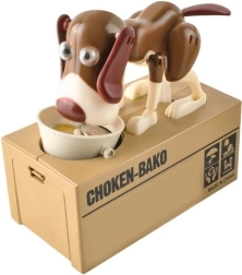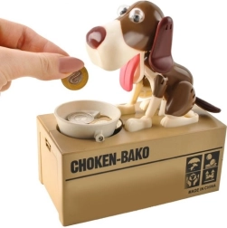 Leder du efter motivation til at få børn begejstrede for at spare? Den interaktive sparebøsse CHOKEN-BAKO er svaret. Læg en mønt i skålen og tryk let – hunden begynder at bevæge øjne, ører, hoved, poter og hale, den laver lyd og “spiser” mønten, som falder ned i den sikre boks.