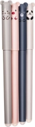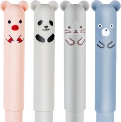 Sættet indeholder 4 stilfulde viskelbare penne i farverne grå, hvid, rosa og blå med legende dyremotiver (gris, panda, mus, bjørn). Takket være termofølsomt blæk retter du nemt små fejl – brug blot viskelæret i enden af pennen og skriv igen, uden grimme overstregninger.