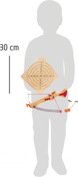 Denne robuste børnekors af naturtræ med røde detaljer giver en realistisk skydeoplevelse og har fokus på sikkerhed. Sugekopspilene hæfter på glatte flader og mål, hvilket gør præcisionstræning både sjov og sikker.