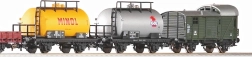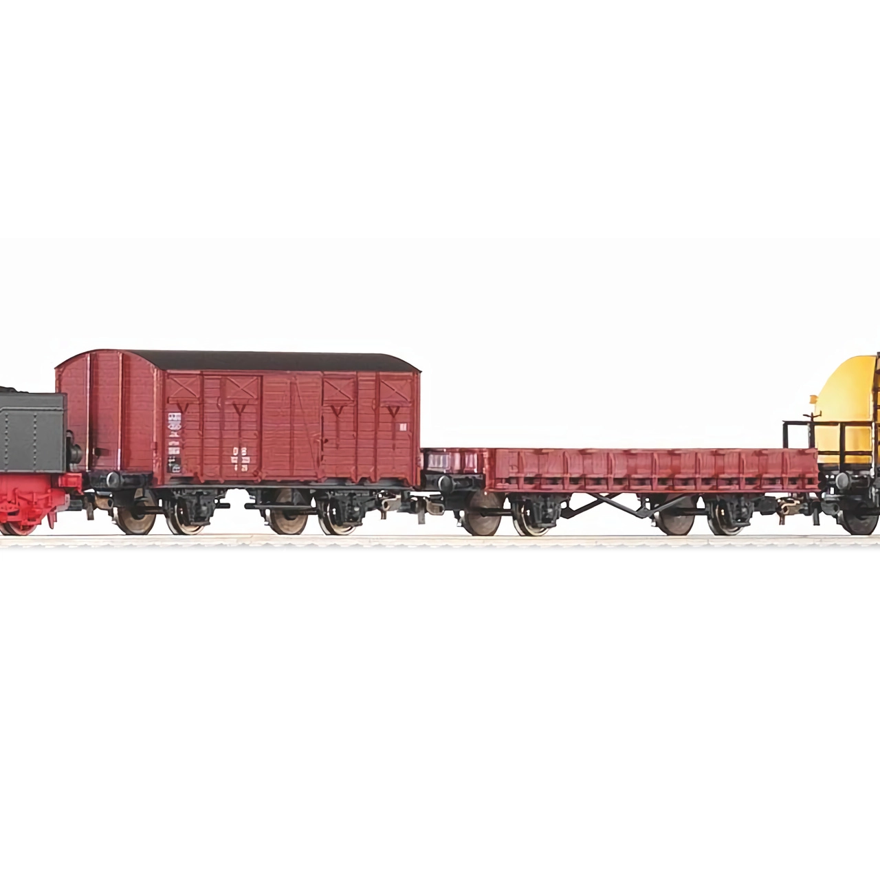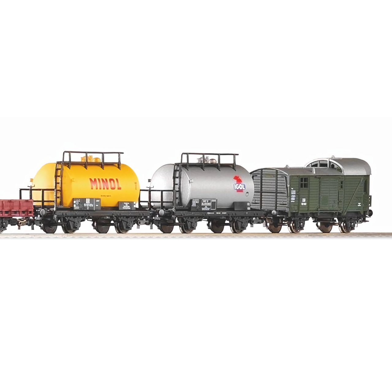 Sættet omfatter en blanding af DB godsvogne fra epoke III – overdækket vogn, platformvogn og tankvogne – til variable sammensætninger og realistiske godsscenarier på din bane.