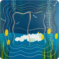 Hvert lag viser en ny fase – fra æg, over haletudse, til frøprins. Børnene lærer om naturen på en legende måde og øver samtidig at lægge efter former og billeder.
