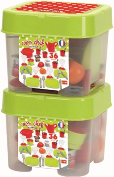 Dette praktiske spisesæt i en bærbar boks bringer masser af sjov og kreativ madlavning ind på børneværelset. Børn kan lege vært, forberede traktement og lære grundlæggende bordskik. Takket være det rige tilbehør egner det sig både til aleneleg og leg sammen med venner.