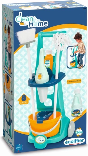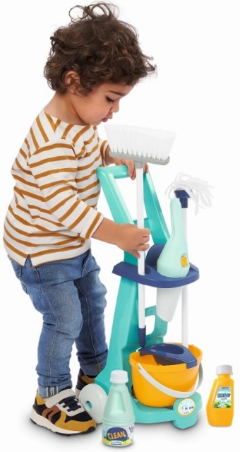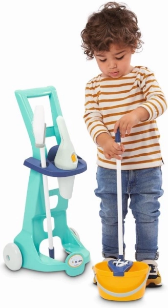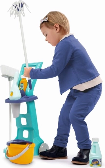 Køb denne børne rengøringsvogn til dine børn og støt deres kreativitet og leg. Sættet indeholder komplet rengøringstilbehør, så børnene kan efterligne rengøringsaktiviteter.