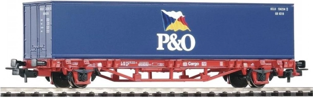 PIKO Lgs579 fladvognen gengiver troværdigt driftsudseendet for DB AG-vogne i epoke V. Medfølger en løst placeret 40' P&O-container med detaljeret tryk, som let kan udskiftes med andre containere for at tilpasse dit containertog.