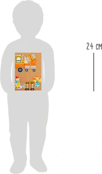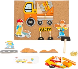 Korktavlen med tegnestifter gør det muligt gentagne gange at lægge og ombygge transport- og byggescener efter børnenes fantasi.