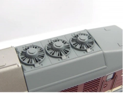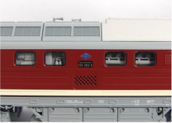 Tro modig og detaljeret model af den dieselelektriske lokomotiv BR 132 “Ludmilla” i DR-udførelse. Den imponerer især med detaljerede forskelle fra andre varianter, såsom rækværk på fronten, detaljer ved front- og sidevinduer samt tagudførelse. Farvelægning og tryk, inklusive alle dekorative elementer, er af højeste kvalitet svarende til Expert-serien. Modellen er udstyret med en kraftig motor med svinghjul, og momentet overføres via diagonalt arrangerede båndringede hjul på de indre aksler i bogierne, men fire aksler er drevne. Sammen med den lange støbte zinkramme sikres dermed fremragende køreegenskaber. Hvidt/rødt LED-lys skifter efter kørselsretning, og lokførerens kabine er ligeledes belyst. Modellen kan udvides med en særligt tilpasset digital decoder med lydmodul og højttaler. Der tilbydes også vogne af tilsvarende type og udseende. Vigtige egenskaber: seks aksler motor med to svinghjul to båndringede drivhjul lys med farveskift efter kørselsretning interiørbelysning PluX22-interface i henhold til NEM 658 koblingsskakt i henhold til NEM 362 med kortkoblingskinematik Dokumentation: Brochure for modellerne BR 132/BR 232 (DE) Generel information om BR 130 (DE, EN, F, NL) Test af modellen i magasinet Miniaturbahnen 2/2018 (DE) Brugsanvisning og reservedelsliste til model nr. 52760 (DE, EN, F, NL)