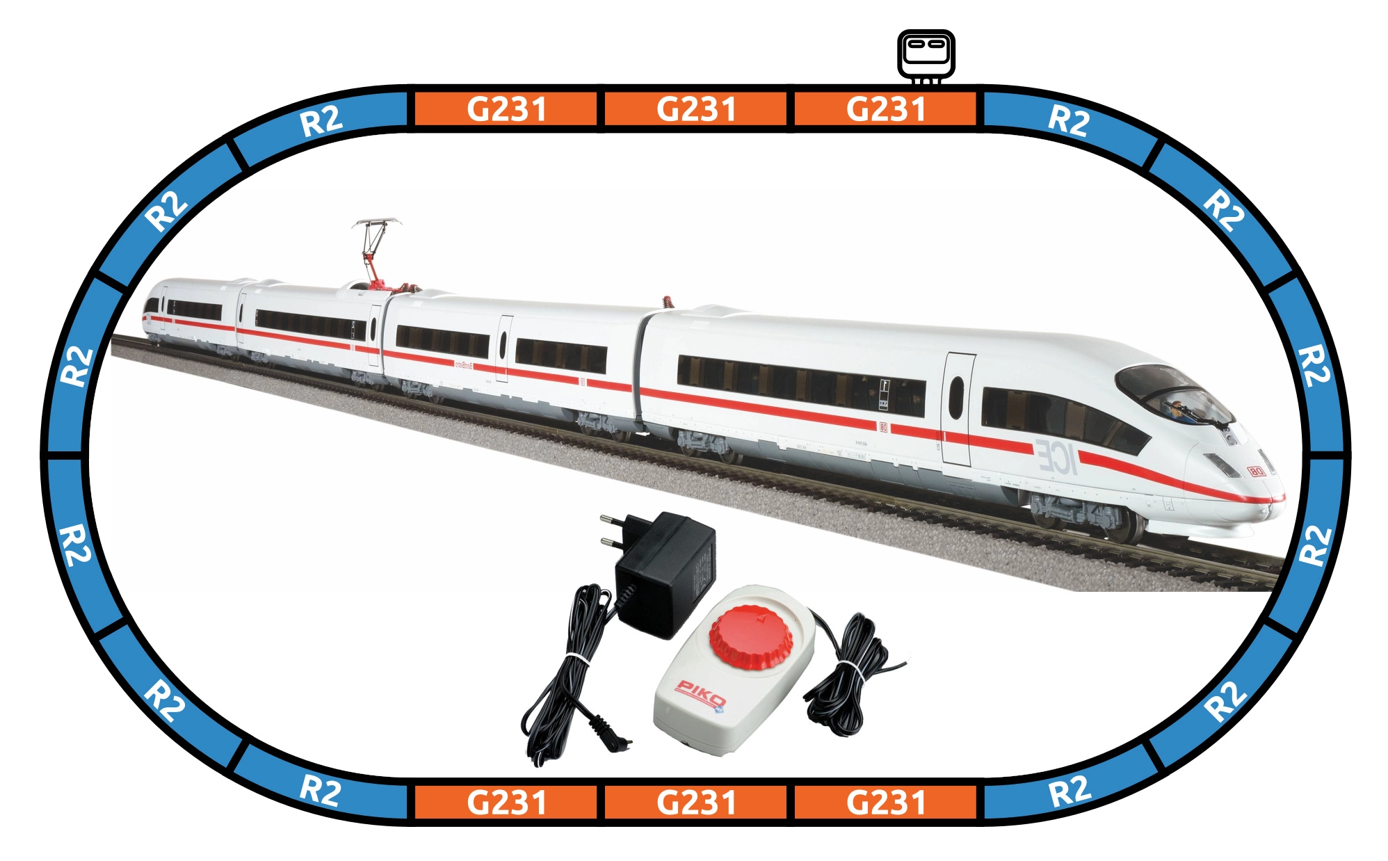 Dette kvalitets-startsæt er ideelt til både begyndere og øvede modelbyggere. Det indeholder et firedelt elektrisk togsæt ICE 3 fra den tyske operatør DB AG, ovalt spor med ballast samt en grundlæggende analog controller med strømforsyning. Takket være NEM 652-grænsefladen kan lokomotivet let opgraderes med digital dekoder og lydmodul.