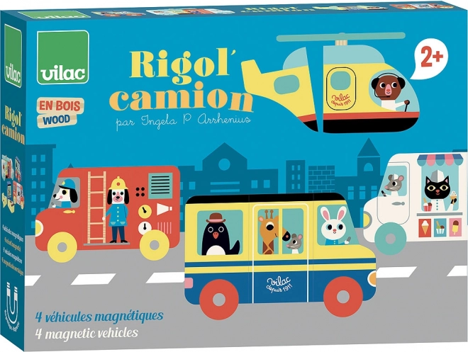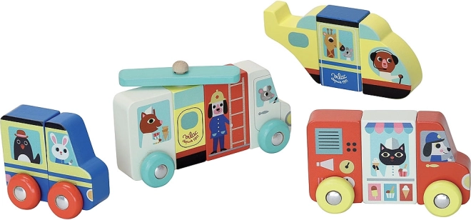 Dette kvalitets magnetiske træpuslespil giver børn uendelige muligheder for at bygge. Takket være de magnetiske dele kan køretøjerne nemt samles og skilles ad igen – og delene kan endda kombineres på sjove måder. Glade farver og retroillustrationer af kunstneren Ingela P. Arrhenius gør hver leg til en fængende visuel oplevelse.