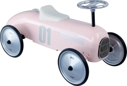Den lyserøde løbe cykel er inspireret af klassiske racerbil og giver børn følelsen af at være en ægte racerkører.