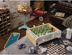 Oplev den kvalitetsrige VILAC Stadium bordfodbold i træ, som forener traditionelt legetøjshåndværk med moderne udførelse. Børn træner koordination, reaktion og strategi, mens de har det sjovt i spændende kampe. Metalstænger med jævn gang og trægreb sikrer behagelig kontrol over spillerne i røde og blå trøjer.