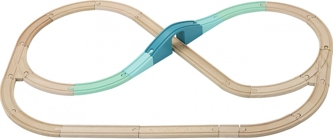 Sættet er kompatibelt med andre trætogbaner på markedet, så banen kan udvides når som helst. Den retro kuffert sikrer praktisk opbevaring og transport, og det originale design af Ingela P. Arrhenius giver hele sættet en unik stil.