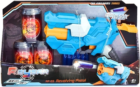 I pakken er der tre plastdåser, som fungerer som mål til træning af sigte, samt seks bløde skumkugler for sikker leg. Et perfekt valg til præcisionskonkurrencer derhjemme og actionfyldte dueller med legekammerater.