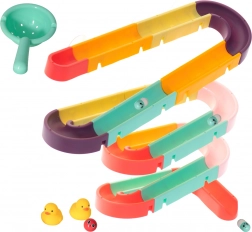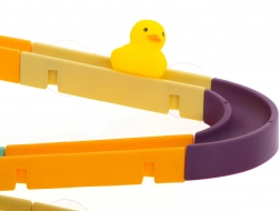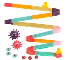 Hver dag kan du skabe en ny racerbane, hvor børnene lærer ikke kun at skabe, men også at konkurrere i sjove løb med farvede bønner og kugler. Skydderen er udstyret med sugekopper for let fastgørelse på fliser eller kar, hvilket sikrer stabilitet under legen.