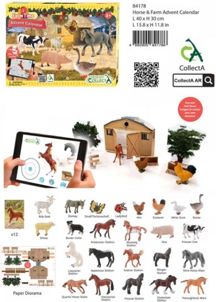 CollectA adventskalender Gård og heste gør den daglige nedtælling til jul ekstra hyggelig. Fra 1. til 24. december afsløres der hver dag et nyt bondegårdsdyr: