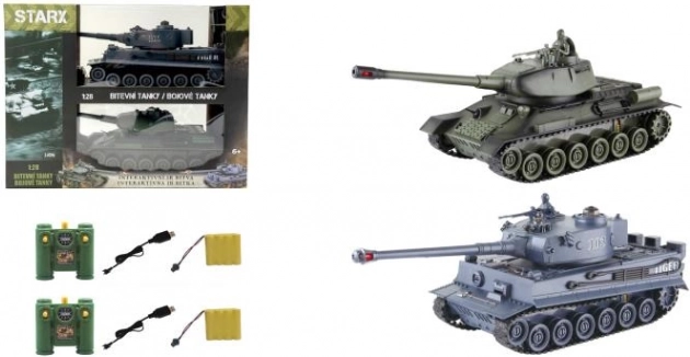 Træd ind i en verden af taktiske opgør med STARX RC-kampvogne i dobbeltpakke. Takket være uafhængig styring af begge bælter drejer kampvognene smidigt på stedet, kører i alle retninger, og det roterende tårn med kanon giver hver kamp den rette dosis adrenalin. Med et tryk på FIRE-knappen udløser du realistiske lyd- og lyseffekter.