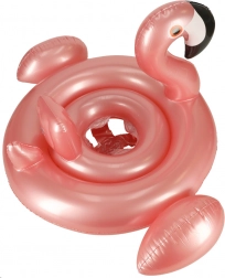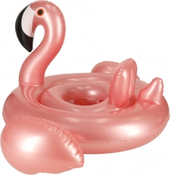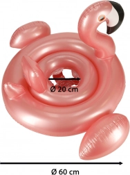 Sød lyserød oppustelig ring formet som en flamingo med integreret sæde til de mindste. Ideel til pool og strand, lavet af holdbart PVC og designet til stabilitet, komfort og tryggere vandtilvænning (op til 20 kg, ca. 1–3 år).