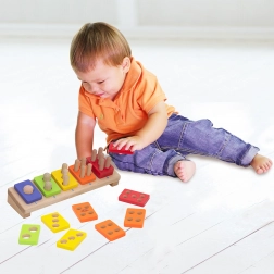 Robust udførelse i massivt træ og en glat overflade sikrer tryg leg. De klare farver motiverer til gentagen leg og udvikler effektivt finmotorik, koncentration og tålmodighed.