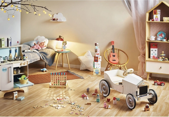 Dette stilfulde tesæt til børn fra VILAC vil glæde både små værter og gæster. Metaldelene med legende illustrationer af SUZY ULTMAN er lette, holdbare og passer perfekt i små børnehænder. Hovedattraktionen er den musikalske tekande, der spiller den muntre melodi „Masser af held og sundhed“, når den vippes – og forvandler hvert møde til en lille fest.