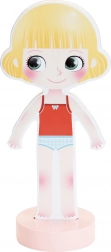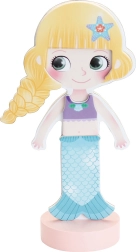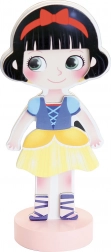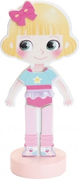 Den stilfulde designer Mia venter på, at du vælger det smukkeste outfit til hende. Med en robust træfigur på en stabil base og magnetiske dele kan børn nemt kombinere kjoler, sko og tilbehør og skabe utallige modekombinationer.