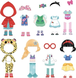 Kjoler, sko, hatte og accessories – de magnetiske dele sættes nemt på og kan skiftes på et øjeblik. Børn træner finmotorik og skaberglæde.