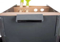 De otte huller til opbevaring af værktøj sikrer, at redskaberne ikke peger mod børnenes hoveder, hvilket øger sikkerheden ved brug.
