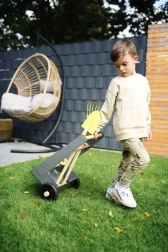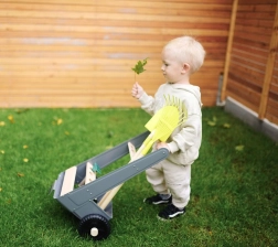 Takket være de solide hjul og stabile konstruktion kan vognen let trækkes og skubbes rundt i haven, hvilket gør havearbejdet lettere for børn.