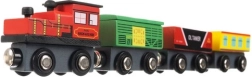 Sættet indeholder 3 lokomotiver og 9 vogne i forskellige farver, hvilket tilbyder mangfoldig sjov.